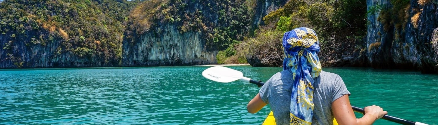 Kayaking is the use of a kayak for moving across water. It is distinguished from canoeing by the sitting position of the paddler and the number of blades on the paddle.